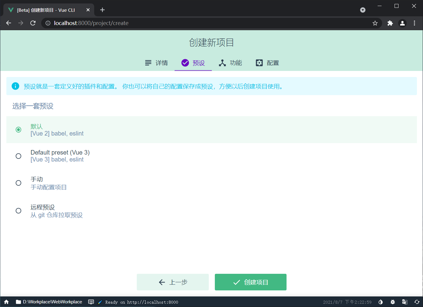 创建一个Vue项目